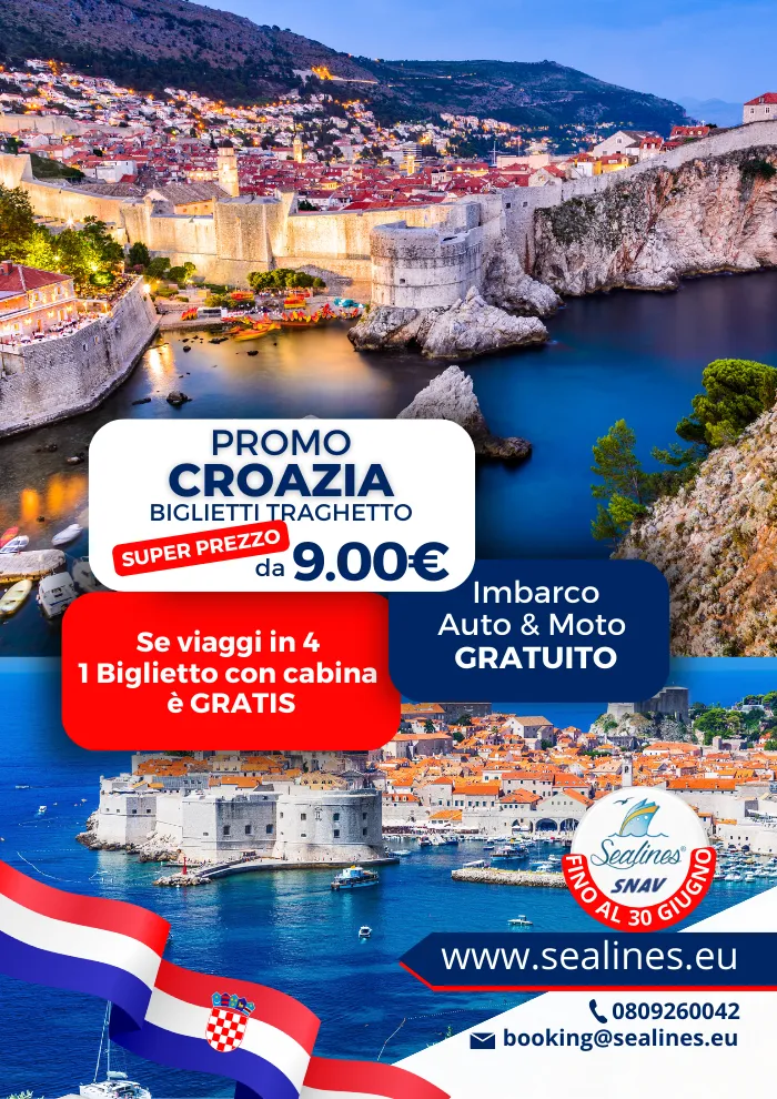 Promozione Vacanze in Croazia 2024 della Compagnia di Navigazione Snav, valida dal 14 al 30 giugno 2024 per la linea Traghetti Croazia. Organizza le tue vacanze in tutta tranquillità, con gli amici e la famiglia, a farti risparmiare ci pensa la Snav, con la sua promozione prorogata fino al 30 giugno.