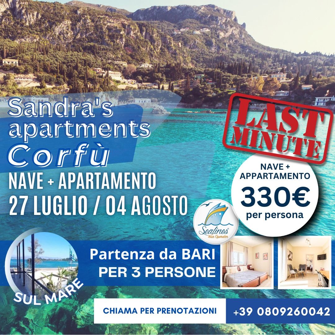 Grazioso appartamento di circa 60mq situato nella zona di Gouvia, Sandra’s Beach dista solo 6 minuti a piedi dalla spiaggia di Gouvia, di sabbia e di ciottoli, dove rilassarsi circondati da un mare limpido o praticare sport acquatici per tutte le età. Di fronte si può ammirare la storica e pittoresca chiesa bizantina di Hypapante del XVIII secolo.